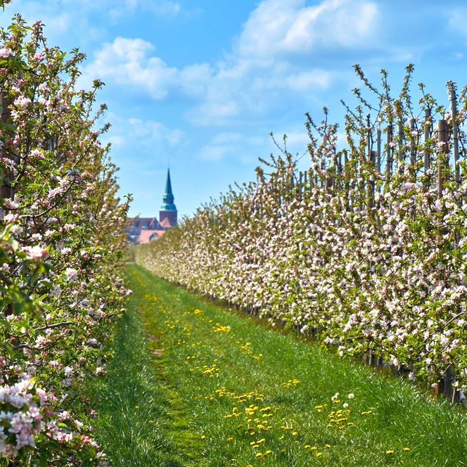 These landscapes are abloom as far as the eye can see. The most famous in Niedersachsen is the heather blooming in Lüneburg Heath. The purple splendour of bell and ling heather transforms the heathland into a magical place in August and September. But the year’s first blossoms are white and pink – from late April to mid-May, more than 18 million fruit trees burst into bloom just outside Hamburg, in the Altes Land, the largest continuous fruit-growing region in northern Europe.