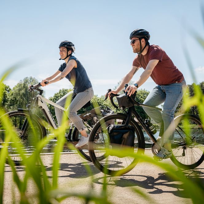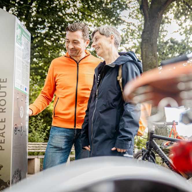 The eastern route passes through Hagen in the Teutoburg Forest, followed by the spa town of Bad Iburg and the saltwater health resort of Bad Laer, with landmarks such as the rocky ‘Piepsteine’. Before continuing to Ostbevern, cyclists can explore the Loburg Water Castle. The final stop before reaching Münster is the romantic pilgrimage town of Telgte, with its Baroque church – a monument in stone to the Peace of Westphalia.