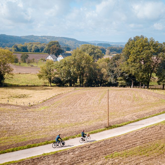 The western route leads through the Nature and Geopark TERRA.vita, past sites of industrial heritage and along the southern edge of the Teutoburg Forest. It passes through Lengerich and Tecklenburg – charming towns with picturesque half-timbered houses in their market squares, offering sweeping views across the Münsterland.
