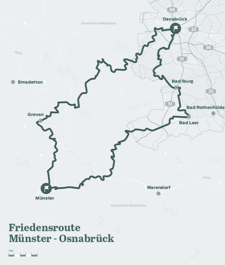 The Peace Route can be followed in two variants, both starting in Osnabrück with its striking town hall and historic Hall of Peace.