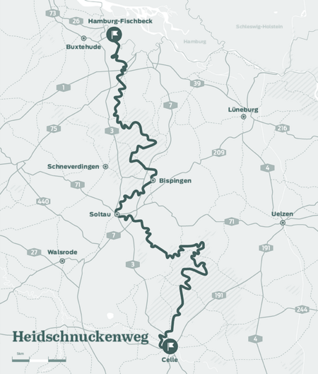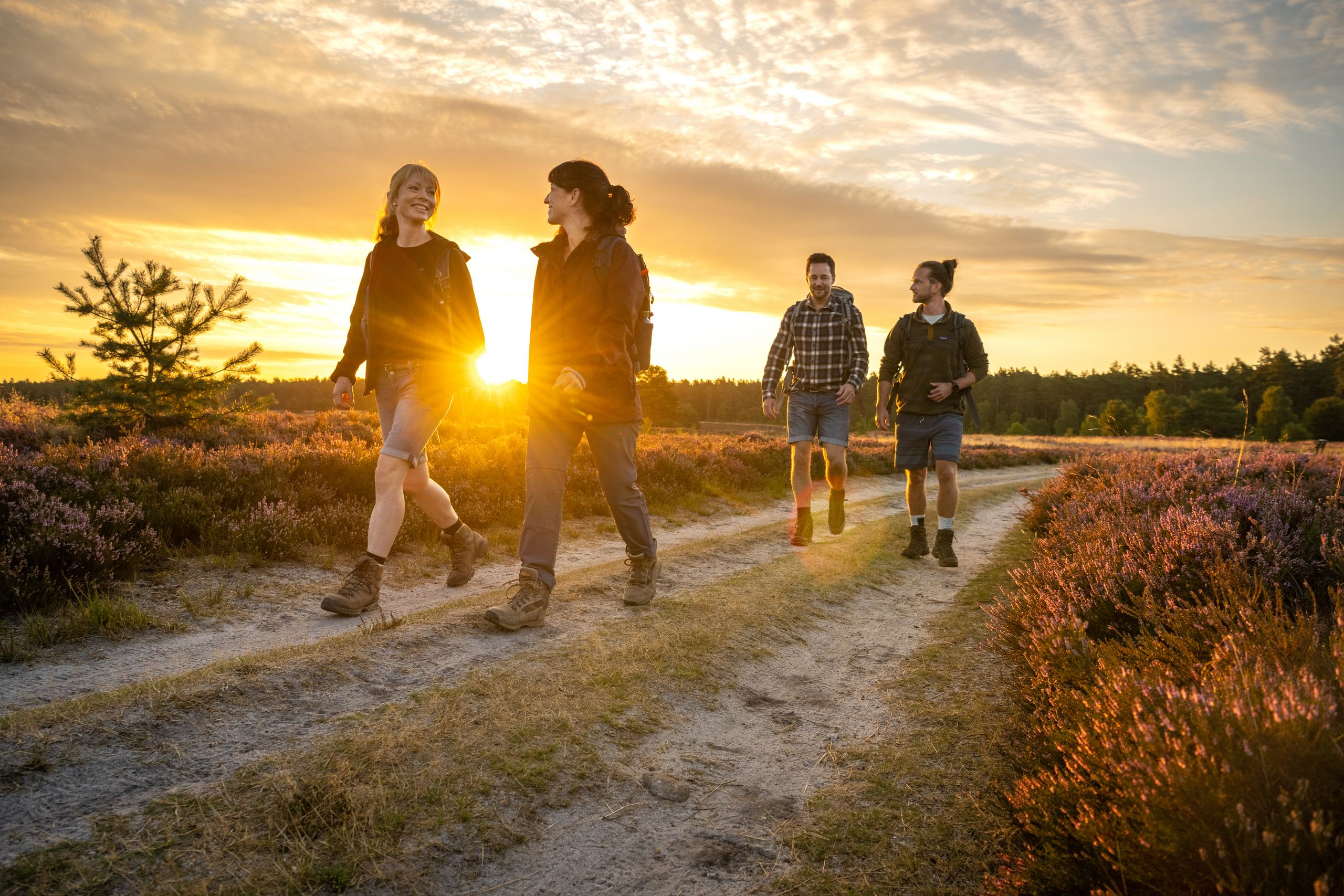 The Heidschnuckenweg route covers 223 kilometres, divided into 13 stages through the picturesque Lüneburg Heath, giving hikers a close-up experience of this stunning natural environment. Especially in late summer, when the heather blooms and veils the landscape in a deep purple, the Lüneburg Heath becomes an unforgettable feast for the senses. As one of Germany’s finest walking trails, the Heidschnuckenweg route leads you through this breathtaking scenery.