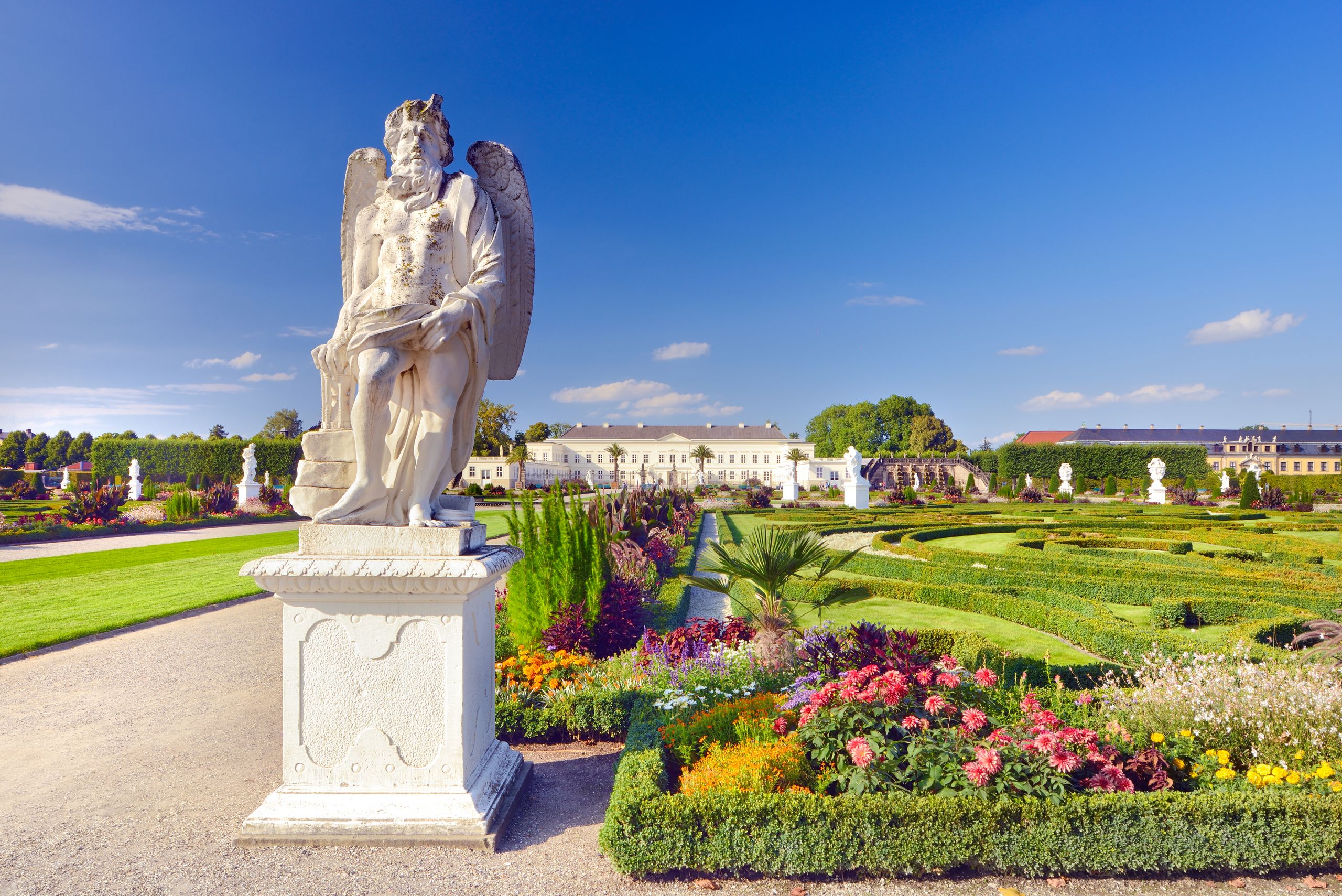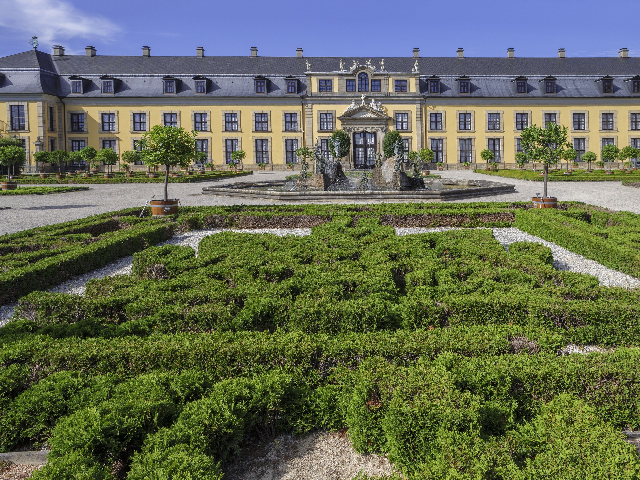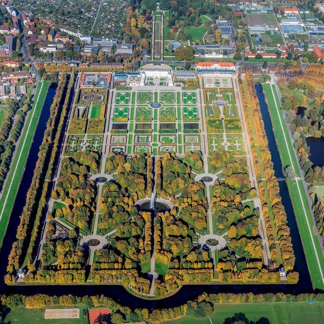 The Royal Gardens of Herrenhausen in Hanover rank among the finest and most significant Baroque gardens in the world. The gentle trickle of fountains and birdsong fill the air: wide gravel paths lead to vibrantly planted flowerbeds, mazes and promenades lined with meticulously pruned trees. A stroll through the Royal Gardens of Herrenhausen evokes the experience of royal promenades of days gone by – a place for leisurely walks and quiet enjoyment. At the heart of the ensemble lies the Große Garten (Great Garden): alongside its intricately designed floral patterns, visitors will find sculptures, fountains and the majestic water jet of the Great Fountain. One particularly striking feature is the grotto, transformed by the artist Niki de Saint Phalle into a colourful dreamscape of mosaics and her famous Nana sculptures.