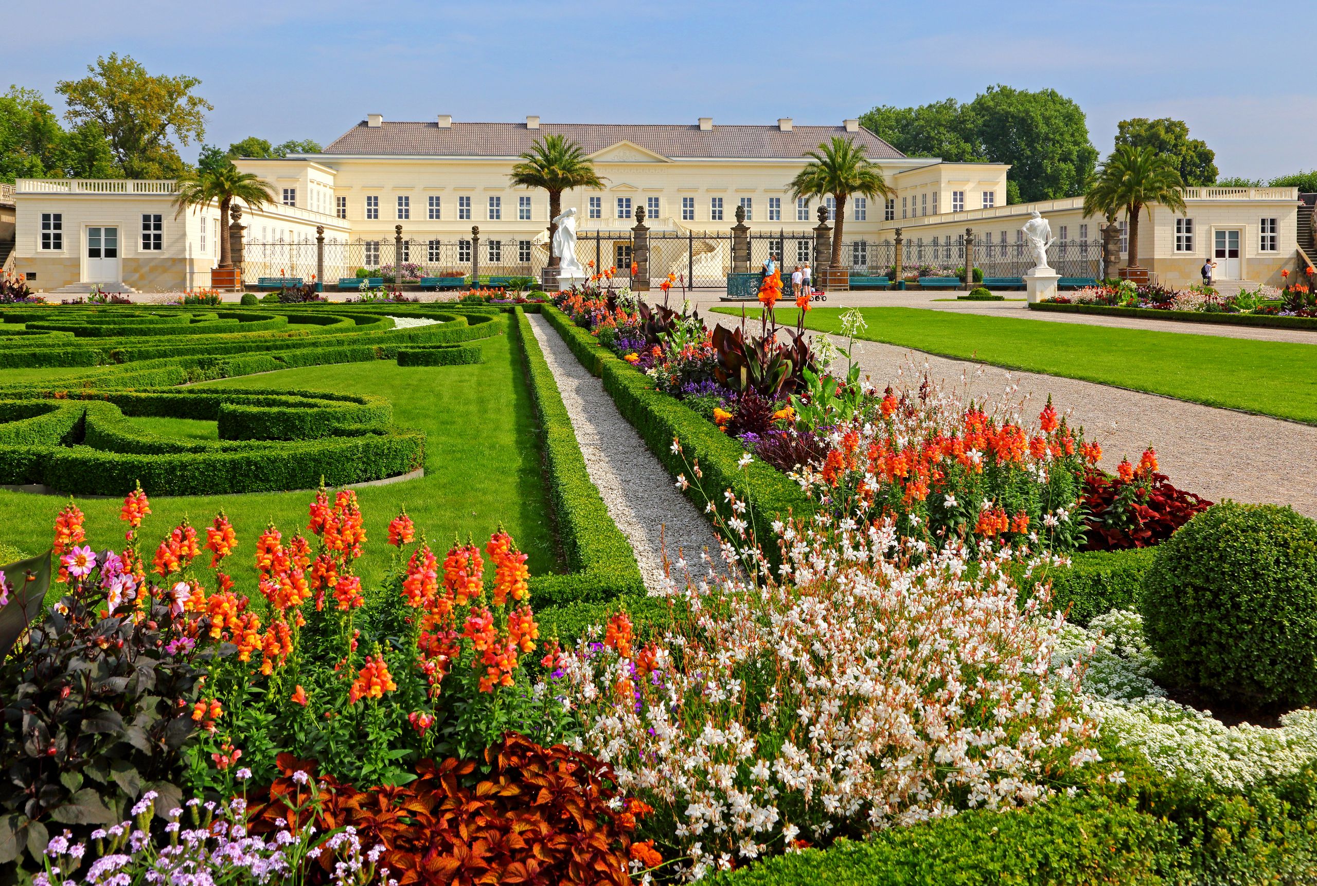 Gaze through the golden gate and feel like royalty. What splendour! Precisely trimmed box hedges, petunias and geraniums arranged into ornate patterns, and impressive works of art await visitors.