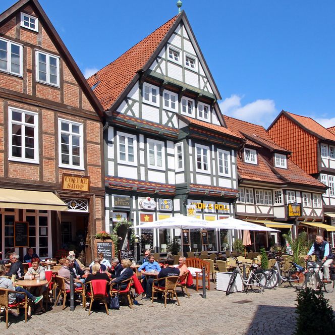 Narrow cobblestone streets, façades adorned with carved beams, small mullion windows and embellished oriels: The ‘Pearl of the Lüneburg Heath’ delights visitors with one of the most beautiful and extensive continuous h