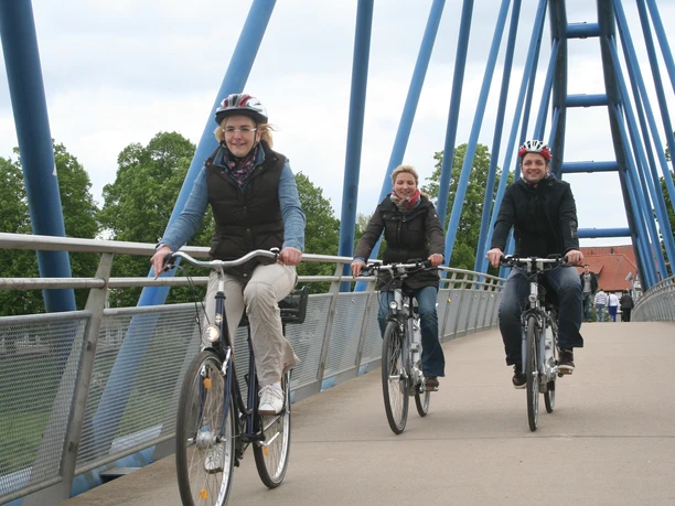 From Hoya to Bremen, it is possible to cycle the Weser cycle path on both sides of the Weser. The alternative route leads you on the right side of the Weser to Dörverden and Verden. In Barme, you can visit the Wolfcenter. It shows everything worth knowing about wolves with spacious enclosures and an interactive permanent exhibition. In Dörverden, the church and the Holländer windmill gallery are attractions. Between Wienbergen and Dörverden, you can cross the Weser over the run-of-river power plant with dam and weir, completed and still operating since 1914 (15.03.-15.10.). The main route of the Weser cycle path runs from Hoya on the left side of the Weser via Magelsen and Oiste (classical church from 1832) to the equestrian town Verden (28,000 inhabitants). Worth seeing: cathedral, St. Andrew's Church, St. John's Church, town hall. Museums: cathedral canons' house, German Horse Museum.